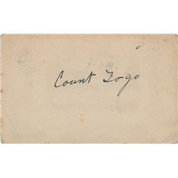 Japanese naval hero (1848-1934) who led his country's fleet to victory in the Russo-Japanese War. Vintage ink signature, "Count Togo,” on t...