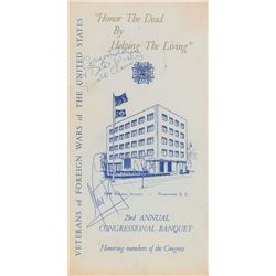 Program for the 23rd Annual VFW Congressional Awards Banquet held in Washington, DC, on March 9, 1971, 5.75 x 11, signed on the front cover in blue ba