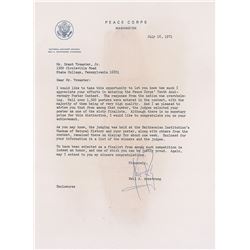 Fascinating TLS, one page, 8 x 10.5, Peace Corps letterhead, July 16, 1971. Letter to Grant Treaster, Jr., in part: “I would like to take this opportu