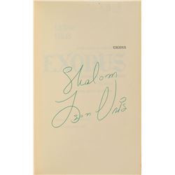 Signed book: Exodus. First edition. Garden City, NY: Doubleday, 1958. Hardcover with dust jacket, 6 x 8.5, 626 pages. Signed on the half-title page in