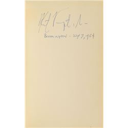 Signed book: Cat's Cradle. First edition. NY: Holt, Rinehart and Winston, 1963. Hardcover with dust jacket, 5.75 x 8.5, 233 pages. Signed on the...