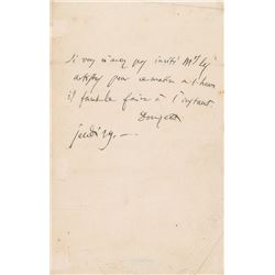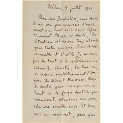 Boldly penned ALS in French, two pages on two adjoining sheets, 5 x 8, July 9, 1901. Letter to the French poet Saint-Georges de Bouhélier, conc...