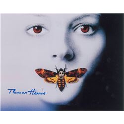 Two photos: a color 10 x 8 photo of Jodie Foster's image from the Silence of the Lambs movie poster, signed below in blue felt tip by Harris; an...