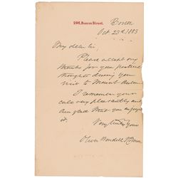 ALS signed “Oliver Wendell Holmes,” one page, 4.25 x 7, 296 Beacon Street letterhead, October 23, 1883. In full: "Please accept my thanks for y...