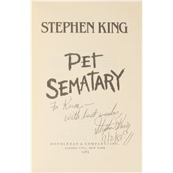 Two books: a copy of Pet Semetary, published by Doubleday & Company in 1983, hardcover with dust jacket, signed and inscribed on the title page ...