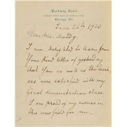 ALS in German, one page, 5.25 x 8.5, October 23, no year. Untranslated letter to "Herr Fritzsche," presumably his publisher, to whom he re...