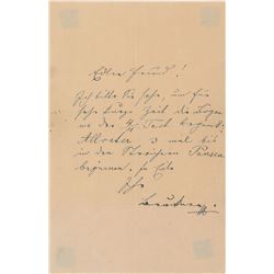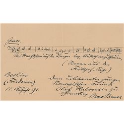 German composer (1838-1920) who wrote over 200 works, including staples of the violin repertoire. Scarce AMQS on an off-white 7.25 x 4.5 sheet, signed