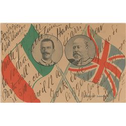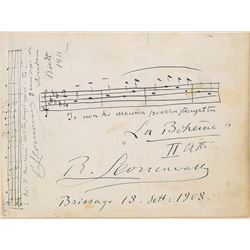 Unusual dual AMQS on an off-white 7.5 x 5.75 sheet, signed and dated twice, "R. Leoncavallo, Brissago 18 Sept. 1908," and "R. Leoncav...