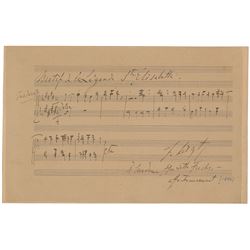 Rare AMQS on an off-white 10 x 6.5 musically lined sheet, signed and inscribed in French in black ink, "F. Liszt, A Madame Henriette Fuchs—affe...