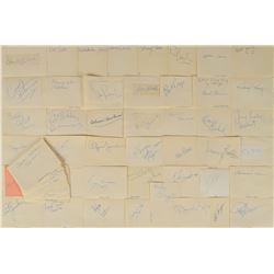 Grouping of six cards or sheets, ranging in size from 3.5 x 2 to 5 x 3, each signed in ballpoint or felt tip by a rock star from the 1950s, including: