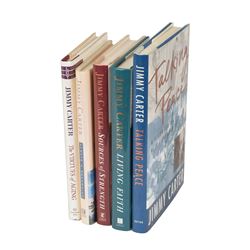 Group of five first edition books, each hardcover with dust jacket, signed on an opening page in black ink or felt tip, "J. Carter," with ...