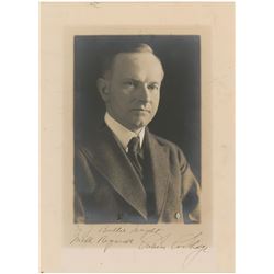 Distinguished matte-finish 9.5 x 13 portrait of Coolidge by Harris & Ewing of Washington D.C., signed and inscribed in fountain pen, "To J....