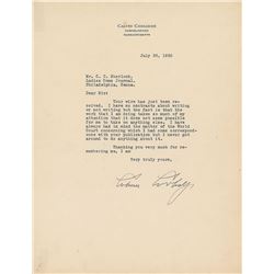TLS, one page, 8.5 x 11, personal letterhead, July 30, 1930. Letter to C. C. Sherlock of the Ladies Home Journal, in full: "Your wire has just ...
