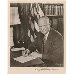 Handsome high-quality matte-finish 8 x 10 gelatin print of Eisenhower at his desk by Murray of New York, neatly signed in the lower border in fountain