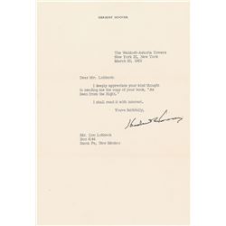 TLS, one page, 7.25 x 10.5, personal letterhead, March 20, 1963. Written from his home at the Waldorf-Astoria Towers, a letter to Don Lohbeck, in full