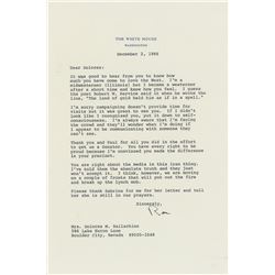 TLS as president signed “Ron,” one page, 7 x 10.5, White House letterhead, December 2, 1986. Letter to Dolores M. Ballachino in Boulder City, Nevada.
