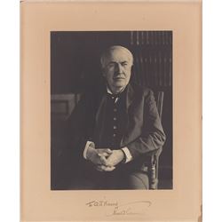 Wonderful matte-finish 6.5 x 8.5 seated portrait of the famed Menlo Park inventor, affixed to the original 9.75 x 12 mount, signed and inscribed on th