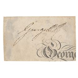 Ink signature, "George R.,” on an off-white 7.25 x 2.75 sheet clipped from the top of a royal document. In very good to fine condition, w...