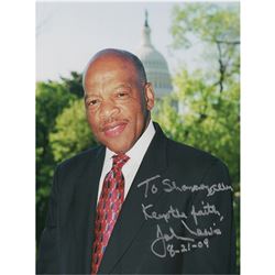 Color satin-finish 8 x 10 photo of Congressman Lewis in Washington, DC, signed and inscribed in silver ink, "To Shannon Allen, Keep the faith, ...