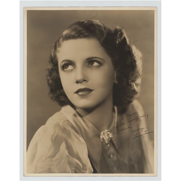 Excellent vintage matte-finish 11 x 14 photo of Turner by Scotty Welbourne, signed and inscribed in fountain pen to Barron Polan (assistant to The Wiz
