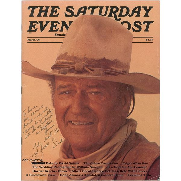 Issue of The Saturday Evening Post from March 1976, Vol. 248, No. 2, 120 pages, 10.25 x 13.25, featuring a large portrait of John Wayne in Western att