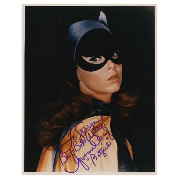 Color glossy 8 x 10 photo of Craig as Batgirl, signed and inscribed in purple felt tip, "To George, Best Bat Wishes, Yconne Craig, 'Batgirl...