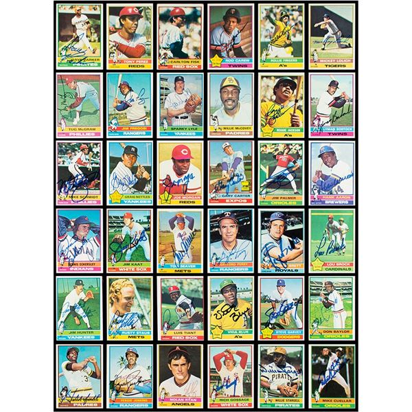 Outstanding near-complete 1976 Topps autographed set containing approximately 900 baseball cards signed on the front in ink or felt tip by pictured Ma
