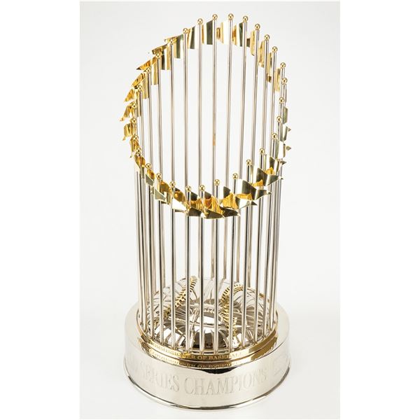 Attractive full-size replica World Series trophy, measuring approximately 28˝ tall with a 14˝ diameter base, featuri