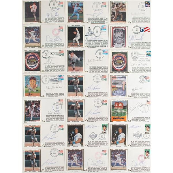 Collection of 21 Gateway covers with silk color cachets honoring various baseball players and events, each signed in ink by one of more players. Inclu