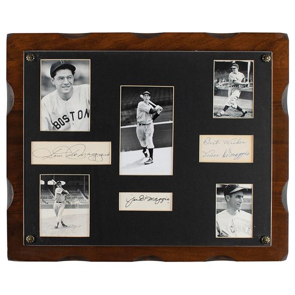 Ink and ballpoint signatures—"Joe DiMaggio," "Dom DiMaggio," and "Best wishes, Vince DiMaggio"â...