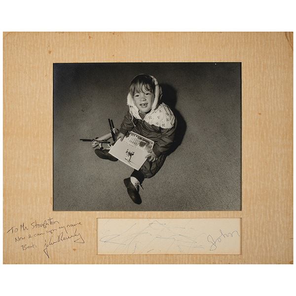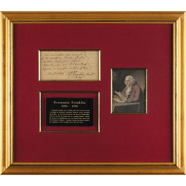 Ink signature, "Albert Einstein,†on an off-white 4 x 2.5 sheet of Princeton stationery. Attractively double-matted and fra