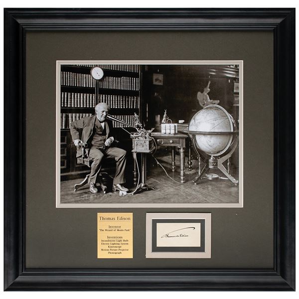 Choice bold ink 'umbrella' signature, "Thomas A. Edison,†on an off-white 3.25 x 1.75 card. Mounted, matted, and fram...