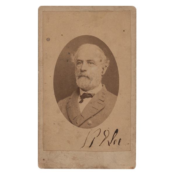 Highly desirable 2.5 x 4 carte-de-visite portrait of Robert E. Lee in uniform with three stars discernible on his collar, boldly signed in ink, &quo...