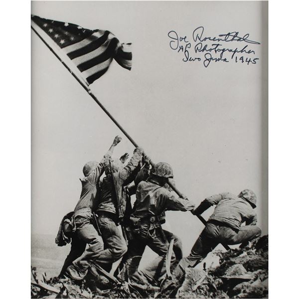 Iconic glossy 7.75 x 9.75 photo of the Mount Suribachi flag-raising after the Battle of Iwo Jima, signed in black felt tip, "Joe Rosenthal, AP ...