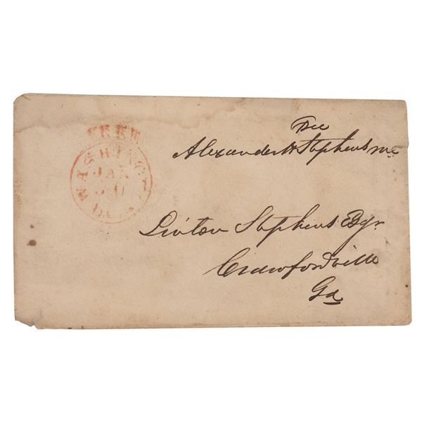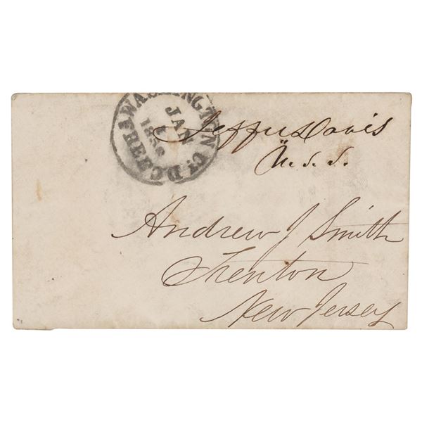 Mailing envelope, 4.5 x 2.55, postmarked in Washington, D.C., on January 1, 1852, addressed in another hand to "Andrew J. Smith, Trenton, New J...