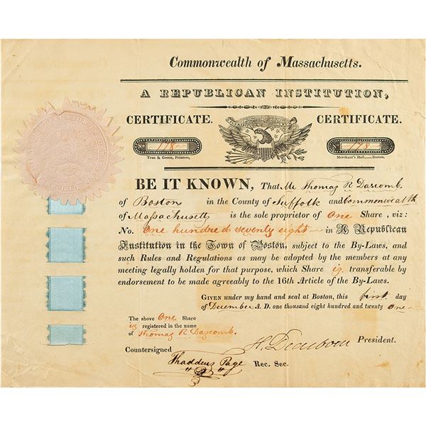 Archive of 26 documents related "A Republican Institution in the Town of Boston," dated from 1818 to 1892, including two early documents s...