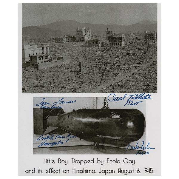 Satin-finish 8 x 9.5 laserprint photo showing images of the ruins of Hiroshima and the atomic bomb dropped from the Enola Gay, with a caption below,...