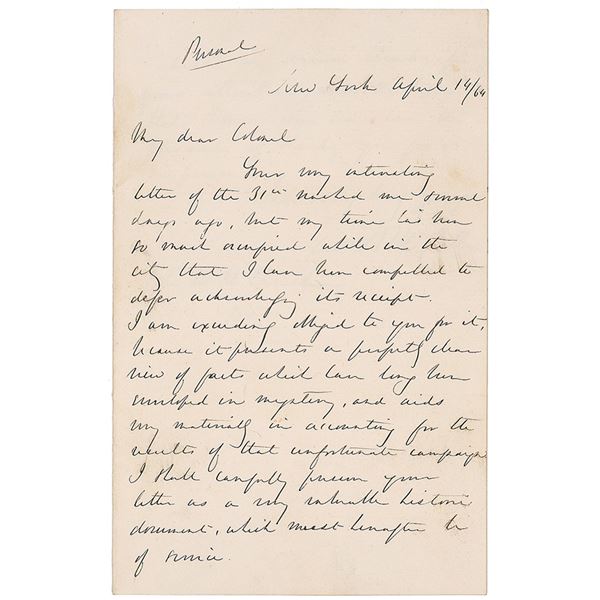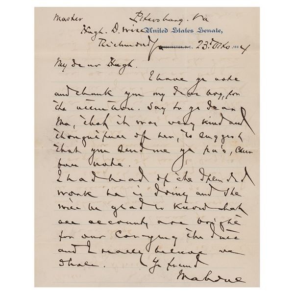 ALS in pencil, signed “J. Longstreet,†one page both sides, 8.25 x 10.5, Office of Longstreet, O