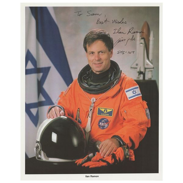 Color 10 x 8 NASA photo of Ramon in his orange space suit, signed and inscribed in black felt tip, "To Sam, Best Wishes, Ilan Ramon, STS-107.&q...