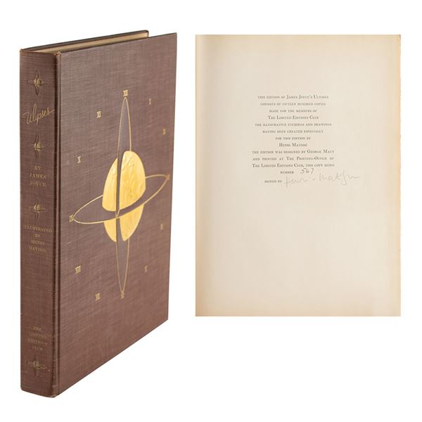 Signed book: Ulysses. Limited edition, numbered 567/1500. NY: Limited Editions Club, 1935. Hardcover bound in brown cloth-covered boards with gilt let