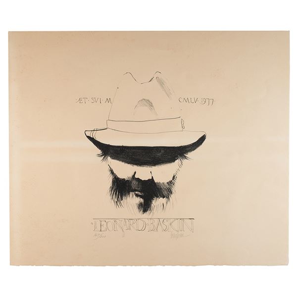 Uncommon matte-finish 10.5 x 13.25 close-up photo of LeRoy Neiman smoking a cigar, signed in black felt tip. Affixed to a same-size cardstock mount. I