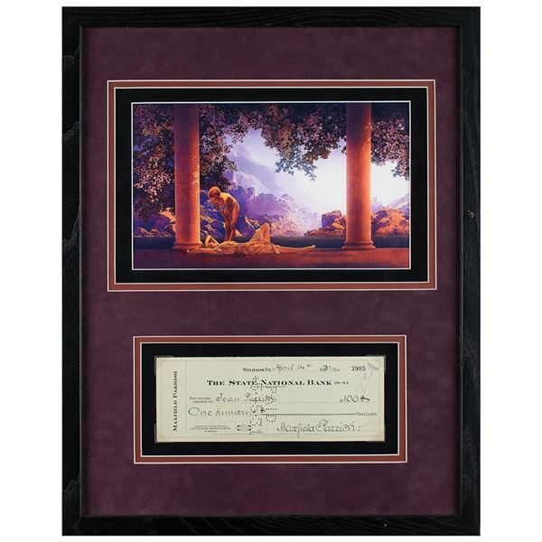 Personal check, 8.25 x 3, filled out and signed by Maxfield Parrish, payable to his daughter Jean Parrish for $100, April 14, 1931. Double-matted and