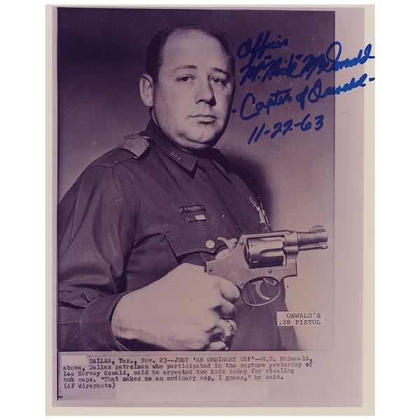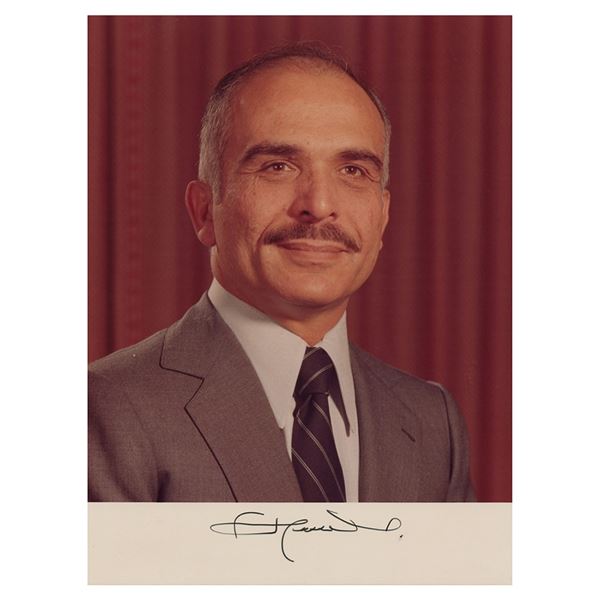 Glossy 8 x 10 photo of Land sitting in a chair, signed in the lower border in black felt tip. Reverse bears an affixed photo caption. In fine conditio