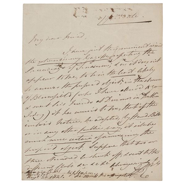 Bank of the United States check, 6.5 x 2.5, filled out and signed by McKean, "Tho. M:Keane," payable to T. Almon for $20, August 22, 1813....