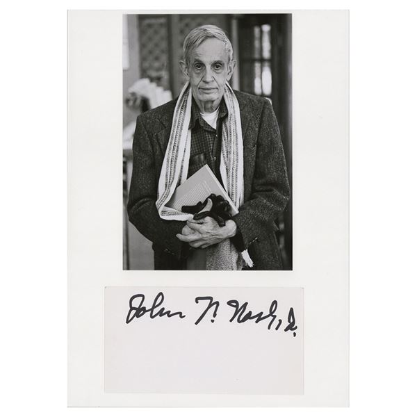 Felt tip signature, "John F. Nash, Jr.,†on a white 5.75 x 3 card, affixed below a portrait on a 8.25 x 11.75 mount. In fin
