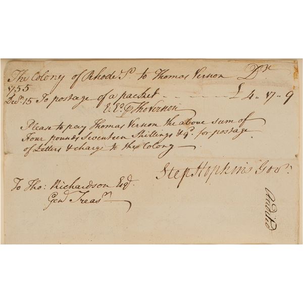 Ink signature, "E. Gerry," with an elaborate paraph on an off-white 2.75 x 2.72 slip, clipped from a larger document. In fine condition, w...
