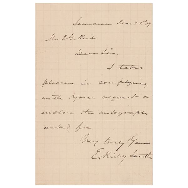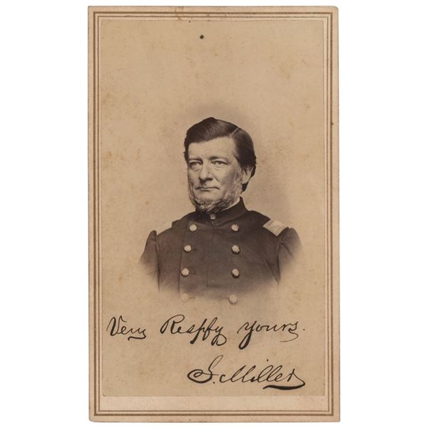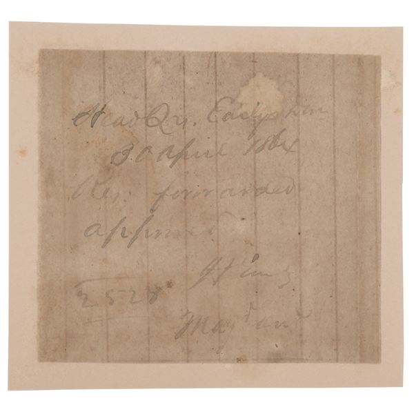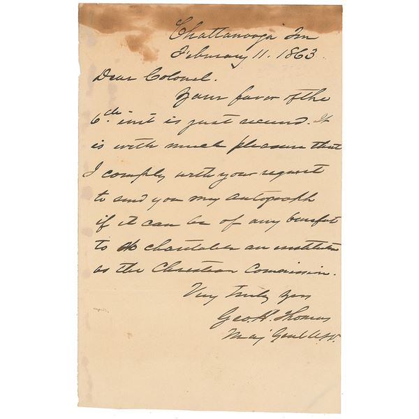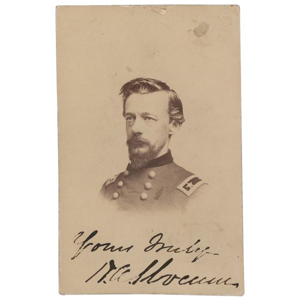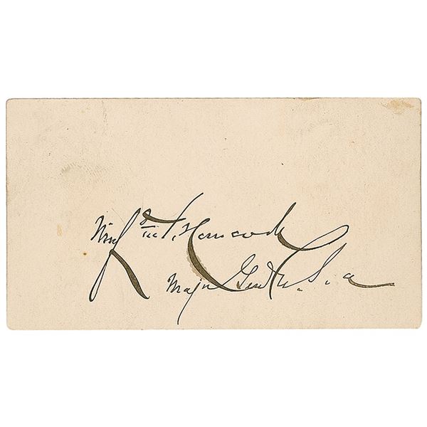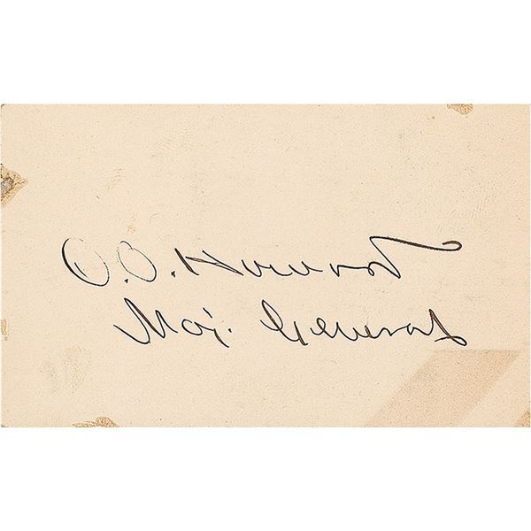 Ink signature, "O. O. Howard, Maj. General," on an off-white 3.75 x 2.25 card. In fine condition, with some small stains, and an area of t...