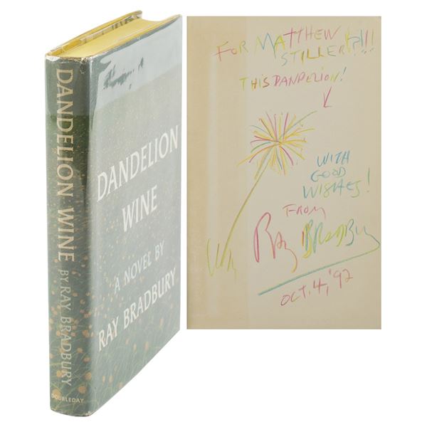 Signed book: Dandelion Wine. First edition. NY: Doubleday & Company, Inc., 1957. Hardcover with dust jacket (not price-clipped), 5.75 x 8.5, 281...