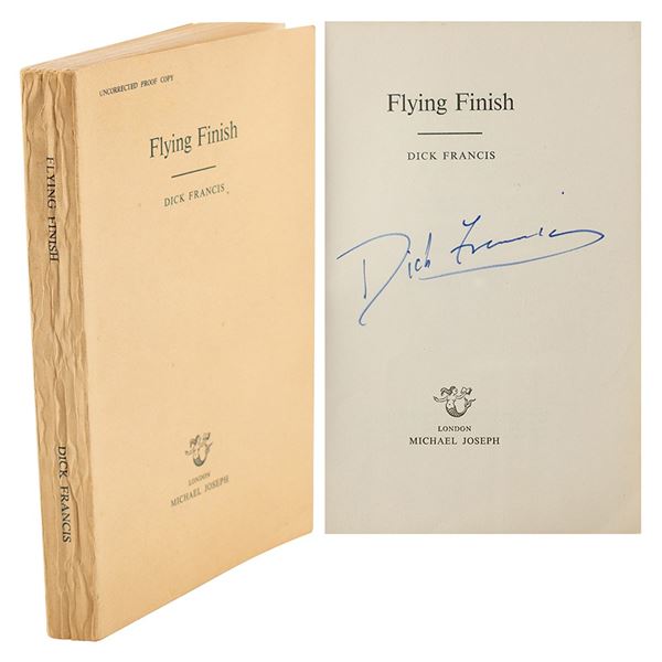 Scarce signed book: Flying Finish. First edition. London: Michael Joseph, 1966. Uncorrected proof copy with plain tan wrappers, 5.25 x 7.75, 218 pages