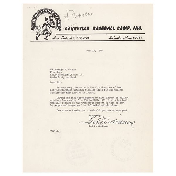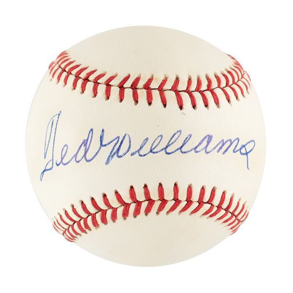 Choice official Rawlings American League (Brown) baseball signed in blue ballpoint on the sweet spot, "Ted Williams." In very fine conditi...